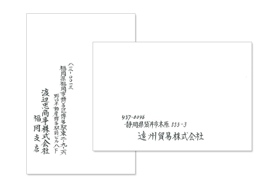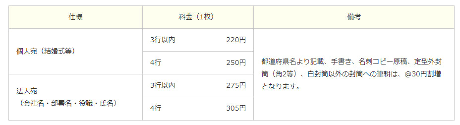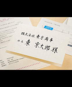 ・毛筆・ペン筆耕、封筒・ハガキ筆耕、縦書き・横書きともに同料金です。