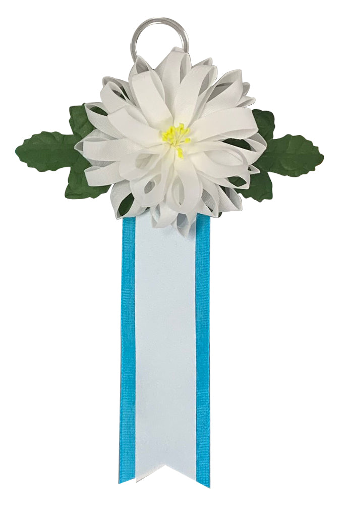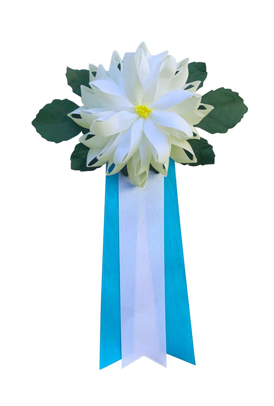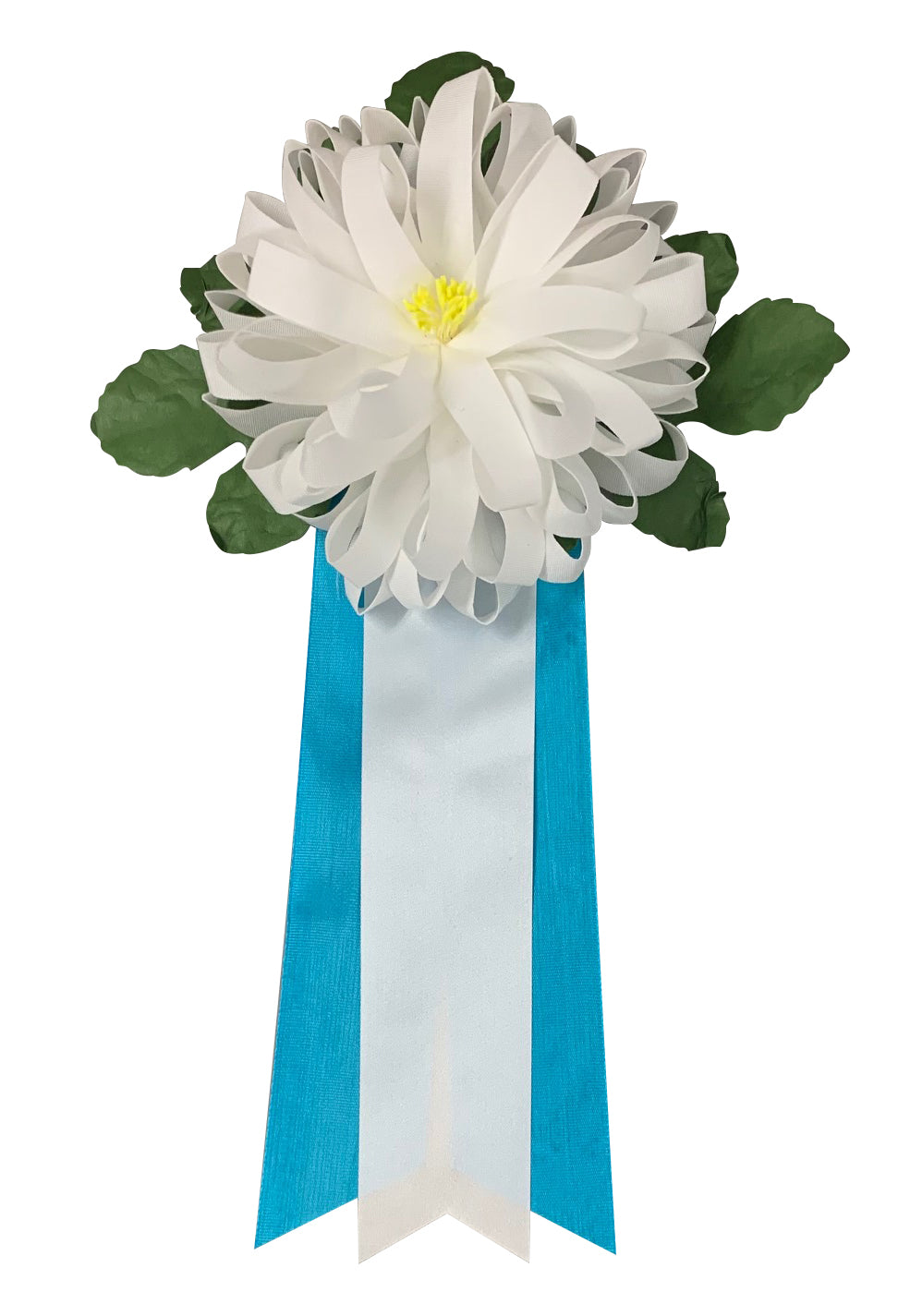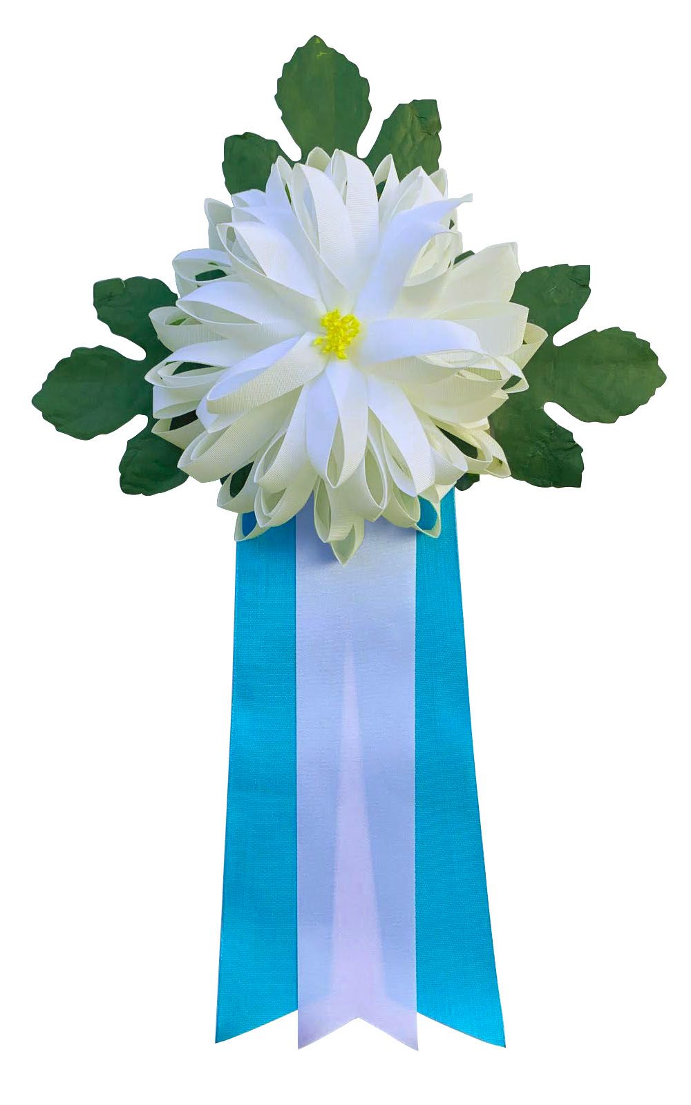 大きさは喪主の方、葬儀委員長様が白又はグレーのリボンバラの「大」サイズ。家人とご来賓を、白・グレーに分けることもできます。その他関係者が多い場合などは、親族や関係者用として「五方」を付けていただくこともできます。